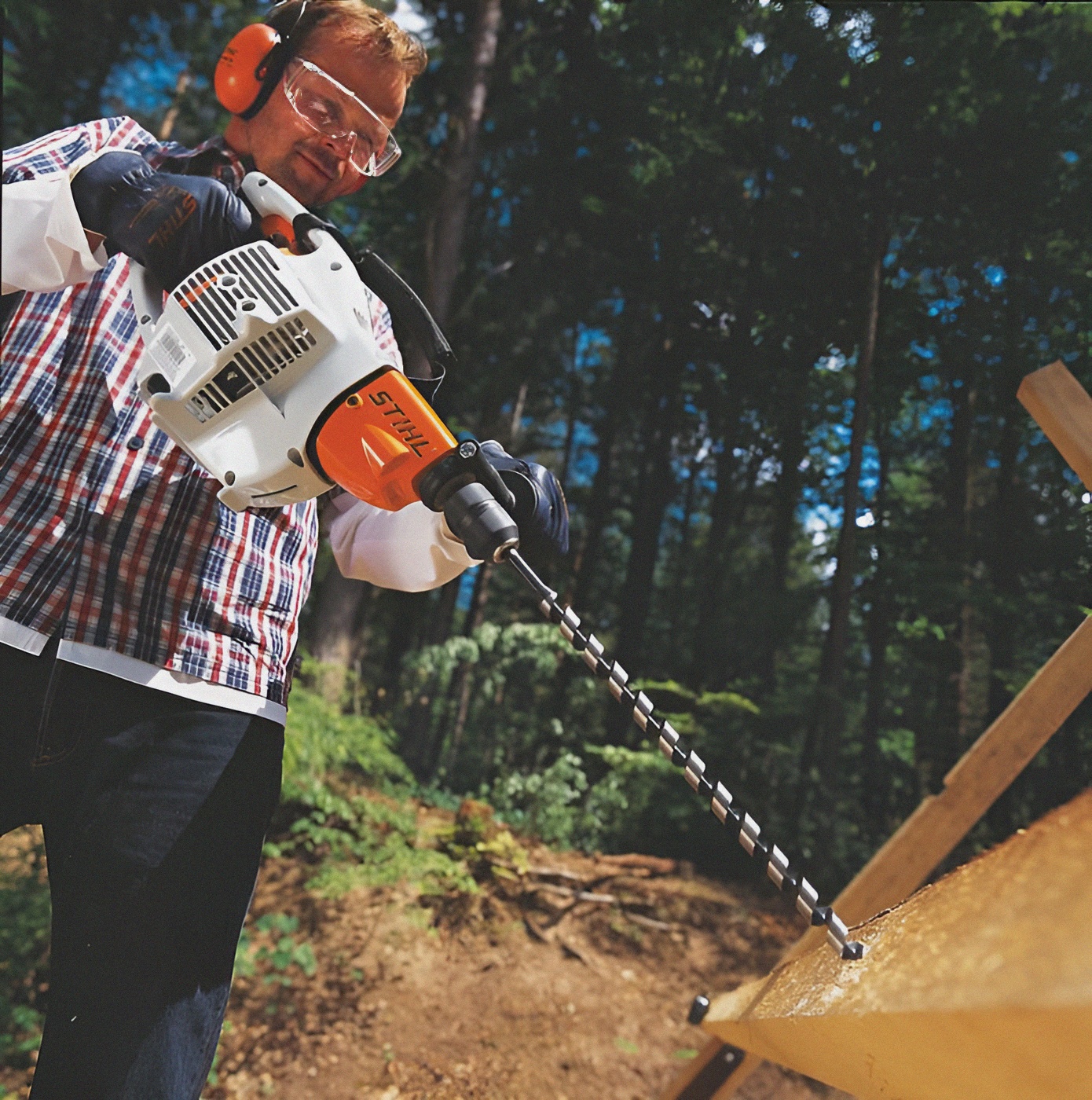 - Taladradora/hoyadora manual con un potente motor de gasolina y diversas brocas para agujeros de hasta 25 mm.